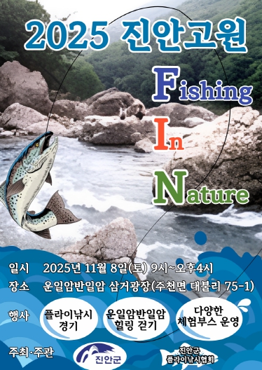 [파이낸셜경제=김예빈 기자] 진안군은 오는 11월 8일, 주천면 운일암반일암 일원에서 ‘진안고원 FIN(Fishing In Nature)’ 행사를 개최한다.