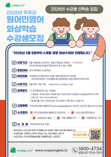 | ▲ 2026 무주군 원어민영어 화상학습 수강생모집 |