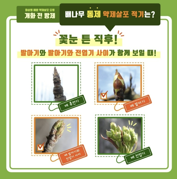 | ▲ 배 개화전 방제 안내문 |