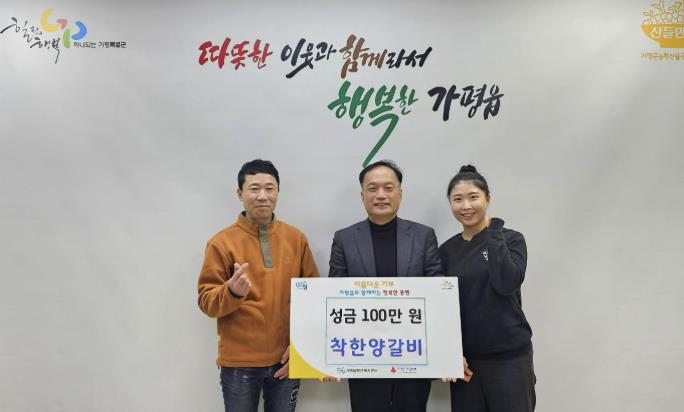 [파이낸셜경제=김기보 기자] 가평군 가평읍 경춘로 소재 착한양갈비는 지난 19일 행정복지센터를 방문해 이웃돕기 성금 100만 원을 기탁했다.