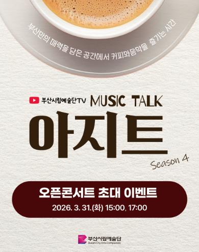 [파이낸셜경제=박영진 기자] 부산시립예술단이 2023년 첫선을 보인 뮤직토크 ‘아지트’가 2026년 시즌4로 새롭게 찾아온다.