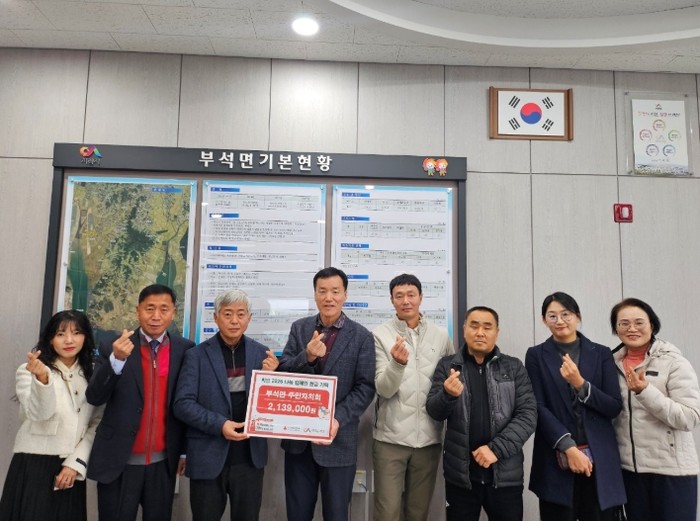 한편, 부석면 주민자치회가 기탁한 성금은 충남사회복지공동모금회 사랑의 열매를 통해 고립·위기가구 긴급 지원과 사회적 약자를 위한 맞춤형 돌봄 지원 등 다양한 복지사업에 사용될 예정이다.