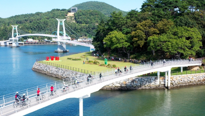 포물선을 그리는 포구를 따라 느리게 걷다 보면 전어를 형상화한 별헤는다리와 단순미가 돋보이는 해맞이다리로 연결된 배알도 섬 정원이 동그마니 떠 있다.
