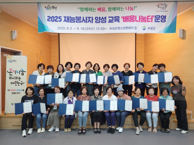 | ▲ 2025 재능봉사자 양성교육 ‘배움나눔터’종강 및 수료식_보성군은 지난 18일, 2025 재능봉사자 양성 교육 프로그램 ‘배움나눔터’ 운영을 성공적으로 마쳤다 |