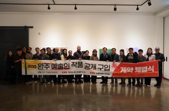 [파이낸셜경제=김예빈 기자] (재)완주문화재단은 10월 31일 복합문화지구 누에아트홀에서 [2025 완주 예술인 작품 공개 구입] 최종 선정 작가들과 작품 구입 계약 체결식을 개최했다.