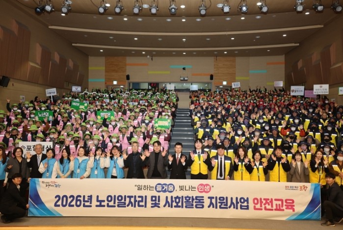 [파이낸셜경제=김지훈 기자] 포항시는 6일 평생학습원 덕업관에서 노인일자리 수행기관 소속 참여자 400여 명과 수행기관장들이 참석한 가운데 ‘2026년 노인일자리 및 사회활동 지원사업 참여자 안전교육’을 개최했다.