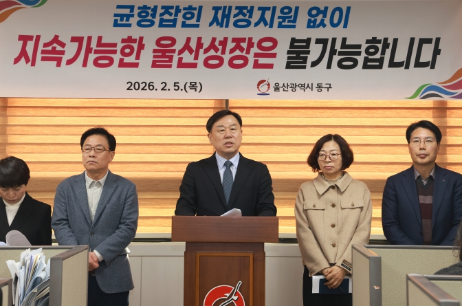 [파이낸셜경제=김예빈 기자] 김종훈 울산 동구청장은 2월 5일 오전 10시 40분 동구청 프레스센터에서 기자회견을 갖고 "균형잡힌 재정지원없이 지속 가능한 울산 성장은 불가능 하다"라며 울산시가 관련 조례를 개정해 자치구가 안정적으로 재원을 확보하는데 앞장 서 줄 것을 촉구했다.