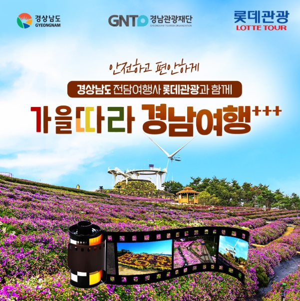 롯데관광과 협력해 9월 17일부터 ‘가을따라 경남여행’ 기획전을 열고 국내관광객을 대상으로 본격적인 가을 관광객 맞이에 나선다. 이번 기획전에서는 계절의 매력을 담은 5개 신규 여행상품을 선보인다.