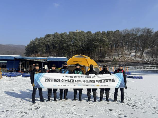 [파이낸셜경제=김기보 기자] 파주소방서는 2월 2일부터 4일까지 3일간 마장호수 일원에서 겨울철 수난사고에 대비한 ‘동계 수난구조 특별교육훈련’을 실시했다. 이번 훈련은 혹한기 수난 현장의 특수성과 위험성을 고려해 구조대원의 신속한 대응과 구조 전문성 강화를 목표로 진행됐다.
