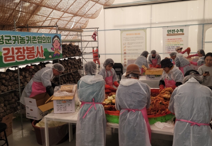 [파이낸셜경제=김기보 기자] 충북 증평군은 증평군귀농귀촌협의회(회장 신건석)가 19일 도안면 송정농원 교육장에서 ‘증평군귀농귀촌협의회 김장 나눔 봉사’활동을 진행했다고 밝혔다.