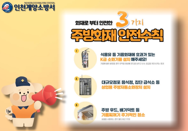 [파이낸셜경제=김기보 기자] 계양소방서는 음식점 주방에서 발생하는 후드·덕트 화재 예방을 위해 안전수칙 홍보에 나섰다고 27일 밝혔다.