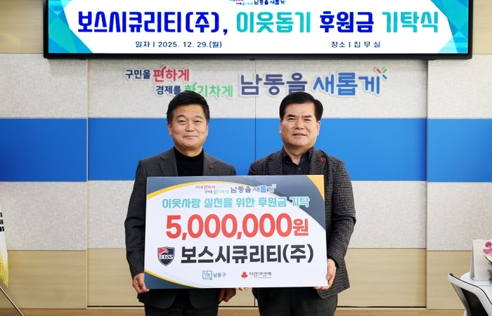 [파이낸셜경제=김기보 기자] 인천시 남동구는 보스시큐리티 주식회사(대표이사 공병석)로부터 사회복지시설 및 단체 지원을 위한 후원금 5백만 원을 기탁받았다고 31일 전했다.