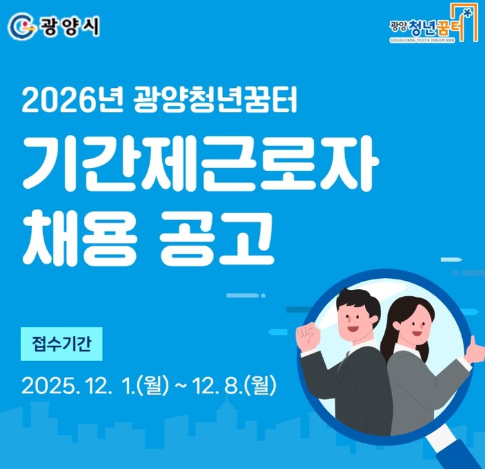 [파이낸셜경제=김예빈 기자] 광양시는 2026년 한 해 동안 광양청년꿈터 운영을 함께할 기간제근로자 4명을 모집한다고 1일 밝혔다.