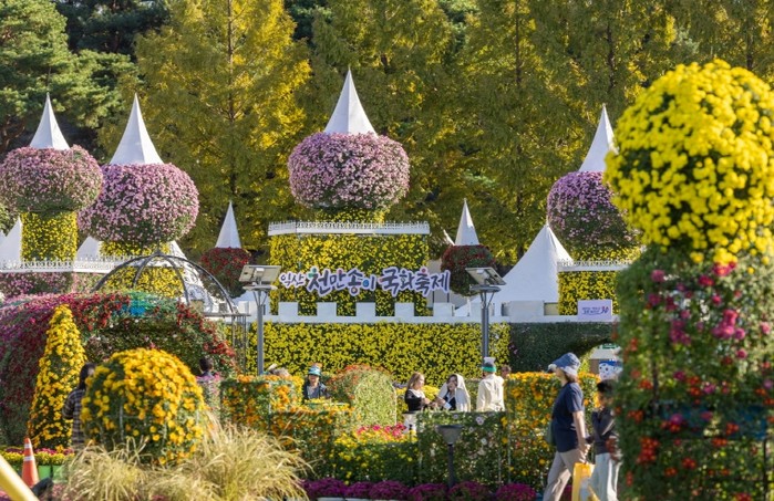 또한 국화꽃 사이에서 펼쳐지는 음악분수 공연은 매일 오전 11시부터 오후 9시까지 가동돼 이색적인 볼거리를 제공하고 있다.