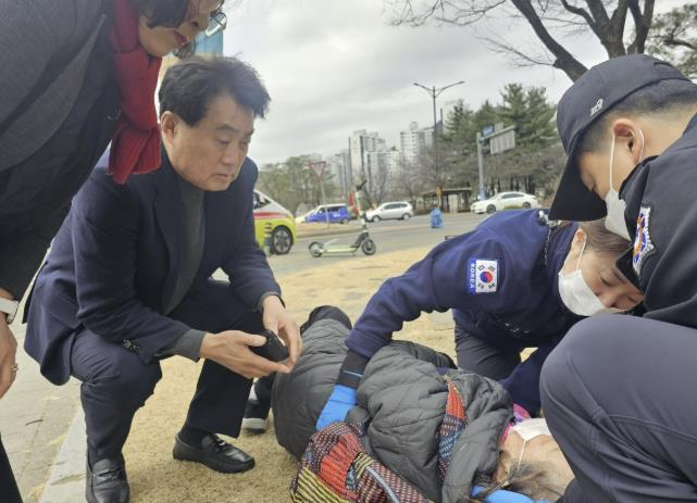 [파이낸셜경제=김기보 기자] 하은호 군포시장이 길에 쓰러진 할머니를 발견하고 신속한 신고와 응급처치를 통해 무사귀환을 도와 화제다