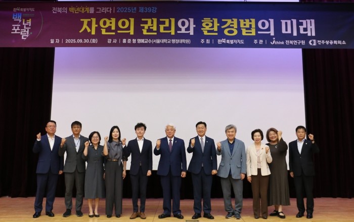 전북연구원이 30일 전북특별자치도청 대회의실에서 개최한 전북 백년포럼 제39강 초청연사로 강연에 나선 홍준형 명예교수(서울대 행정대학원)는 ‘자연의 권리와 환경법의 미래’라는 주제 강연을 통해 이같이 지적했다.