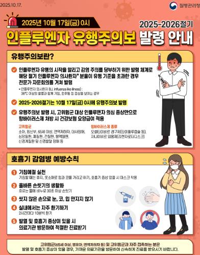질병관리청은 지난 17일 인플루엔자 유행주의보를 발령했다.