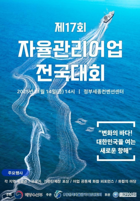 [파이낸셜경제=김영란 기자] 해양수산부는 11월 14일 정부세종컨벤션센터에서 ‘변화의 바다! 대한민국을 여는 새로운 항해’라는 주제로 ‘제17회 자율관리어업 전국대회’를 개최한다고 밝혔다.