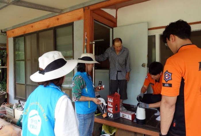 관산읍 복지기동대와 119생활안전순찰대가 함께 직접 방문하여 소화기와 화재 감지기를 설치한 후 사용 방법을 안내했고, 누전차단 멀티탭과 자동소화패치, 비상구급함 등 안전물품을 제공했다.