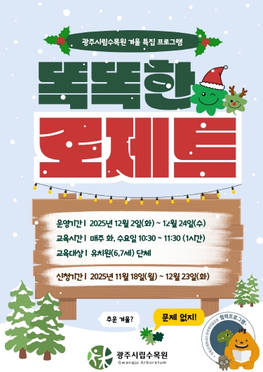 [파이낸셜경제=김예빈 기자] 광주광역시립수목원은 오는 12월 2일부터 24일까지 수목원 방문자센터에서 6~7세 어린이단체를 대상으로 체험형 교육프로그램 ‘똑똑한 로제트’를 운영한다.