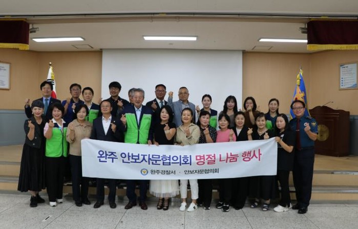 [파이낸셜경제=김예빈 기자] 완주경찰서는 추석명절을 맞이해 지난 29일, 추석명절을 맞이하여 군의회 김재천 부의장, 이순덕 의원 및 안보자문협의회, ㈜정석케미칼, 삼례·봉동 로타리클럽, 봉동로타리클럽등 30여명은 탈북민을 위한 따뜻한 사랑 나눔 행사를 가졌다.
