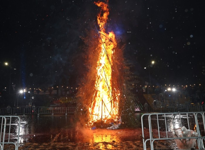 이어 축제의 대미를 장식한 달집태우기에서는 활활 타오르는 달집을 둘러싸고 신명 나는 농악단의 풍물 한마당과 시민들의 강강술래가 한데 어우러지며 비를 완전히 잊게 만드는 장관을 연출했다.