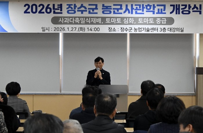 [파이낸셜경제=김예빈 기자] 장수군은 지난 27일 농업기술센터 대강의실에서 교육생 130여 명이 참석한 가운데 ‘2026년 장수군 농군사관학교 개강식’을 성황리에 개최했다.