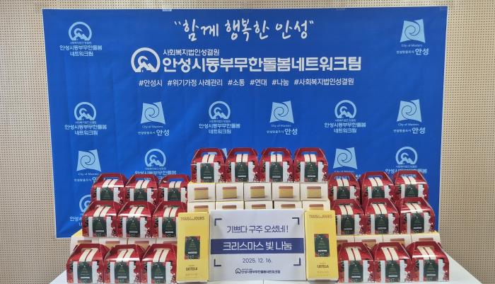 [파이낸셜경제=김기보 기자] 안성시동부무한돌봄네트워크팀은 지난 16일 크리스마스를 기다리며 관내 사회복지시설 7곳과 소외계층 50가정에 '크리스마스 빛 나눔'행사를 진행했다고 밝혔다.