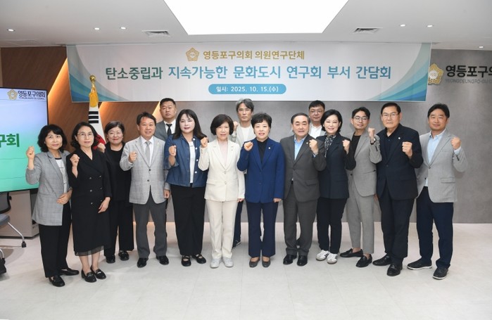 [파이낸셜경제=김예빈 기자] 영등포구의회 의원연구단체 ‘탄소 중립과 지속 가능한 문화도시 연구회’(대표 이순우 의원)는 15일 영등포구의회 다목적회의실에서 관련 부서와 간담회를 열고 탄소중립과 문화도시 조성을 위한 실천 방안을 논의했다.