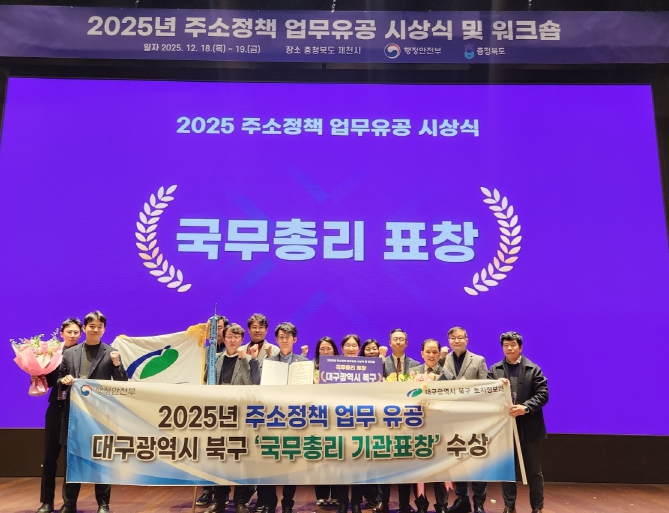[파이낸셜경제=김지훈 기자] 대구 북구청은 2025년 주소정책을 성공적으로 추진한 공로를 인정받아 국무총리 기관 표창을 수상했다.