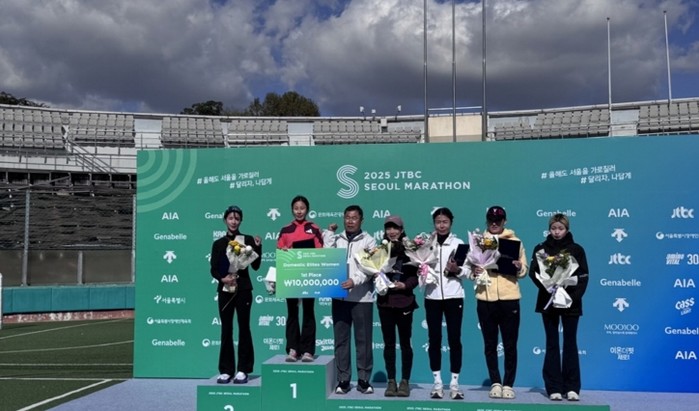 | ▲ 2025 JTBC서울마라톤대회 시상식 사진(우승상금 팻말을 들고 있는 임예진 선수) |