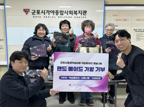 이번 기부에는 홈패션 및 의류 수선 분야에서 활동 중인 평생학습동아리 ‘너영나영’과 ‘소담손길’ 두 개 팀이 참여했다. 두 동아리는 수개월간의 정기 학습을 통해 익힌 기술을 바탕으로 실용성과 완성도를 갖춘 핸드메이드 가방 76점을 제작했으며, 기부식은 11월 24일 군포시가야종합사회복지관에서 진행됐다. 동아리 간 공동 프로젝트 추진을 통해 자연스럽게 협력 체계를 구축하고, 학습 공동체로서의 연대감을 강화하는 계기가 됐다는 점에서 의미가 크다.