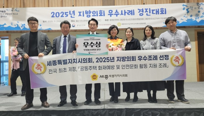 세종시의회가 전국 최초로 제정한'공동주택 화재예방 및 안전문화 활동 지원 조례'는 이날 대회에서 아파트 밀집 도시의 구조적 위험을 해소하기 위한 혁신 입법으로 평가받았다.
