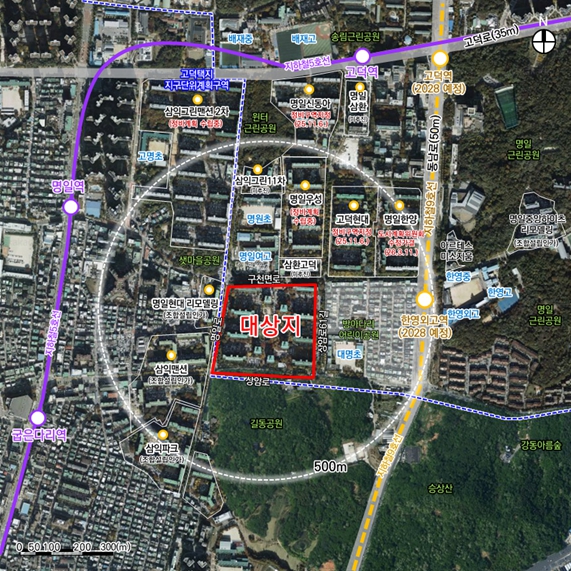 이번 정비계획에서는 단지 중앙부를 관통하는 보행축을 통해 대명초등학교 통학 동선을 안전하게 정비하고, 2028년 개통 예정인 지하철 9호선 한영외고역과 연계되는 생활권 이동체계를 마련해 주변 지역과의 연결성을 강화할 계획이다.