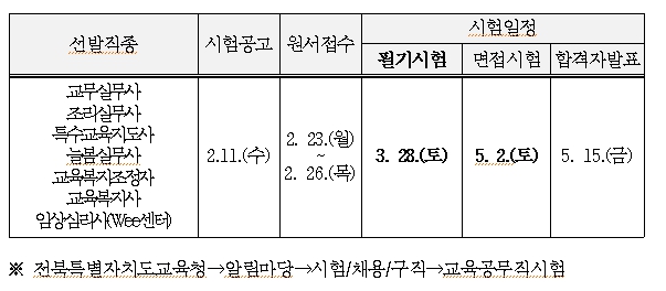 | ▲ 2026년도 교육공무직원 채용시험 일정(예정) |