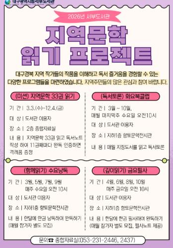 | ▲ 대구시교육청 서부도서관, 2026 지역문학 읽기 프로젝트 운영 |