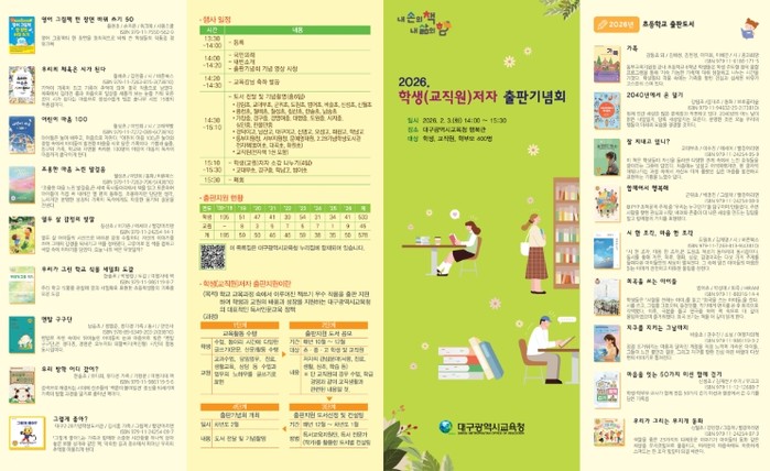 [파이낸셜경제=김지훈 기자] 대구시교육청은 2월 3일 오후 2시, 시교육청 행복관에서 학생ㆍ교직원 저자, 학부모, 학교ㆍ출판 관계자 등 410여 명이 참석한 가운데 ‘2026. 학생・교직원 저자 출판기념회’를 개최한다.