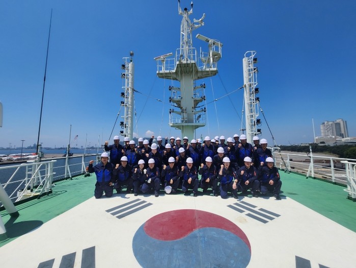| ▲ 지난 7월 특별 승선실습을 수료한 교육생들이 단체 기념사진을 촬영하고 있다. |