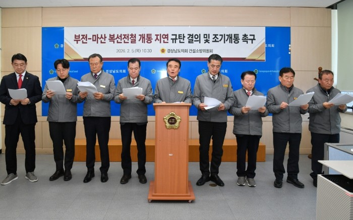 이날 건설소방위원회는 “당초 2021년 개통 예정이었던 부전~마산 복선전철이 최근 국토교통부의 제20차 실시계획 변경 고시로 인해 2026년 12월 말까지 또다시 연기됐다”며 “준공을 코앞에 둔 철길을 눈앞에 두고 330만 도민을 기약 없는 희망고문 속에 방치하고 있다”고 비판했다.