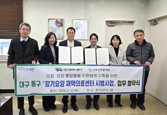 [파이낸셜경제=김지훈 기자] 대구 동구보건소는 지난 12일, 굿모닝연합의원과 장기요양 수급자 대상 방문의료 서비스 제공을 위한 ‘장기요양 재택의료센터 시범사업’ 업무협약을 체결했다