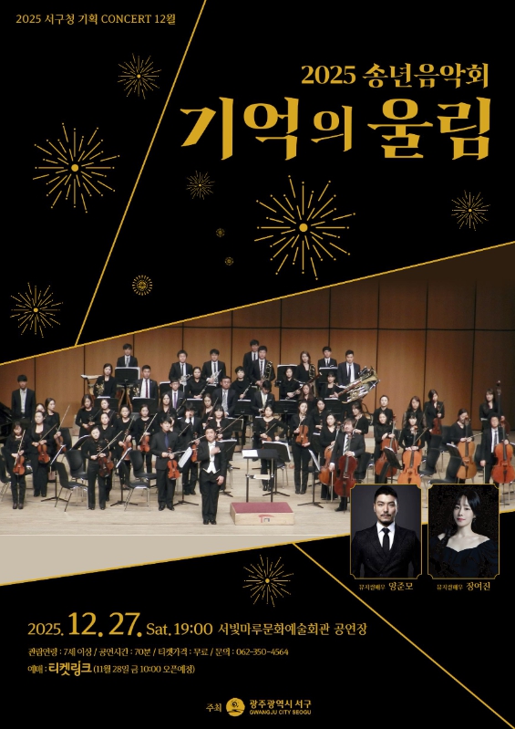 [파이낸셜경제=김예빈 기자] 광주광역시 서구는 2025년 한 해를 마무리하며 오는 27일 오후7시 서빛마루문화예술회관에서 송년음악회 ‘기억의 울림’을 개최한다.