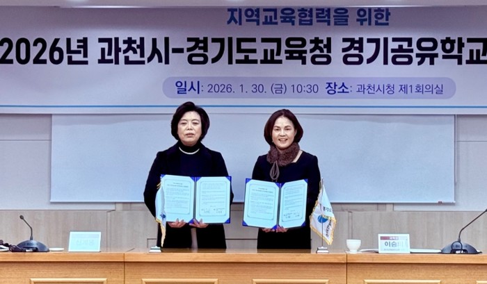 [파이낸셜경제=김기보 기자] 안양과천교육지원청은 1월 30일, 과천시청에서 과천시(시장 신계용)와 지역의 교육자원을 활용한 학생 맞춤형 미래교육 확대와 지속 가능한 지역교육협력 체계 구축을 위해 '2026 지역교육협력을 위한 과천시–경기도교육청 경기공유학교 업무협약'을 체결했다.