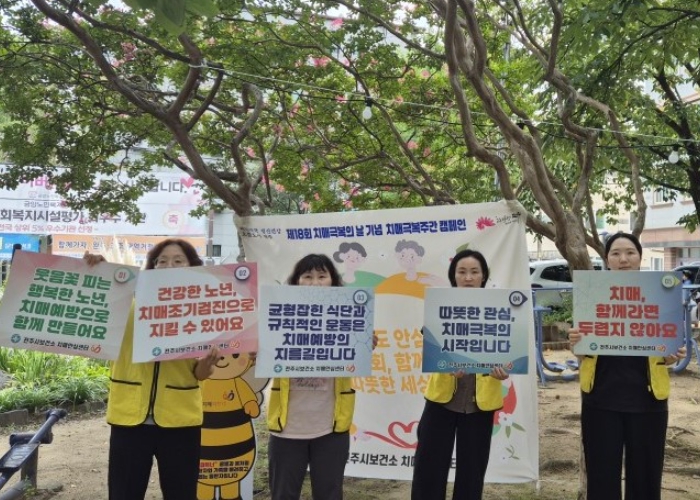 [파이낸셜경제=김예빈 기자] 전주시보건소는 ‘제18회 치매극복의 날’(9월 21일)을 앞두고 치매에 대한 인식 개선과 예방 분위기 확산을 위해 지난 15일부터 오는 22일까지 전주지역 6개 노인복지관을 순회하며 치매극복주간 캠페인을 전개하고 있다고 18일 밝혔다.