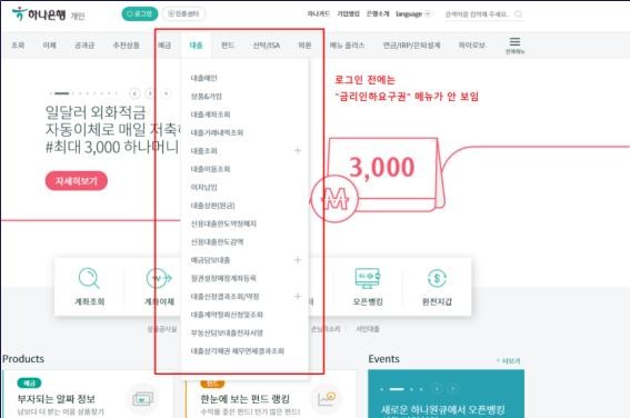 ■ (문제1) 고객이 로그인해야만 ‘금리인하요구권’ 메뉴에 접근 가능