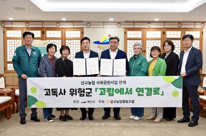 [파이낸셜경제=김영란 기자] 예산군은 삽교농협(김종래 조합장)과 저소득 고독사 고위험 가구를 위한 ‘고립에서 연결로 시범사업’ 업무협약을 체결했다고 1일 밝혔다.