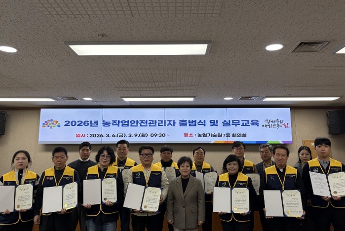 도 농업기술원은 6일 기술원 회의실에서 천안, 아산, 논산, 금산, 부여, 태안 6개 시군에서 선발된 안전관리자 12명과 관계자들이 참석한 가운데 ‘2026년 농작업 안전관리자 출범식’을 개최했다.