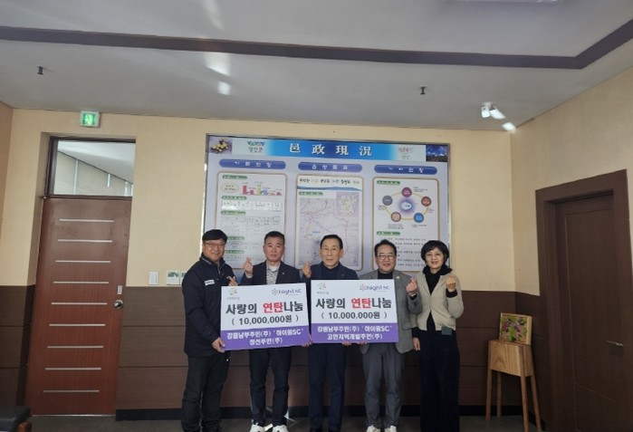 [파이낸셜경제=조성환 기자] 강원남부주민(주) 하이원SC(대표 송재범)와 정선주민(주)(대표 유지흥), 고한지역개발 주민(주)(대표 이태희)는 19일 고한읍지역사회보장협의체와 사북읍지역사회보장협의체에 지역 내 취약계층을 위한 지역 연계 복지사업에 써달라며 각각 1000만원의 성금을 기탁했다.