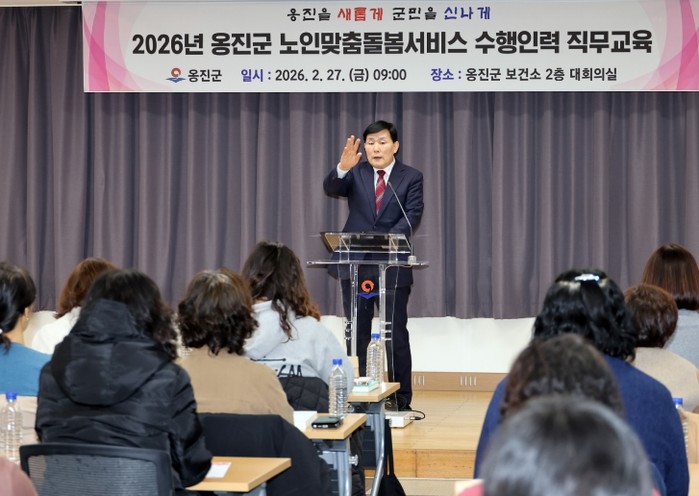 [파이낸셜경제=김기보 기자] 옹진군은 지난 27일부터 3월 6일까지 군청 6층 중회의실에서 노인맞춤돌봄서비스 수행인력의 전문성 강화를 위한 '2026년 노인맞춤돌봄서비스 사업 직무교육'을 2회에 걸쳐 실시한다고 밝혔다.