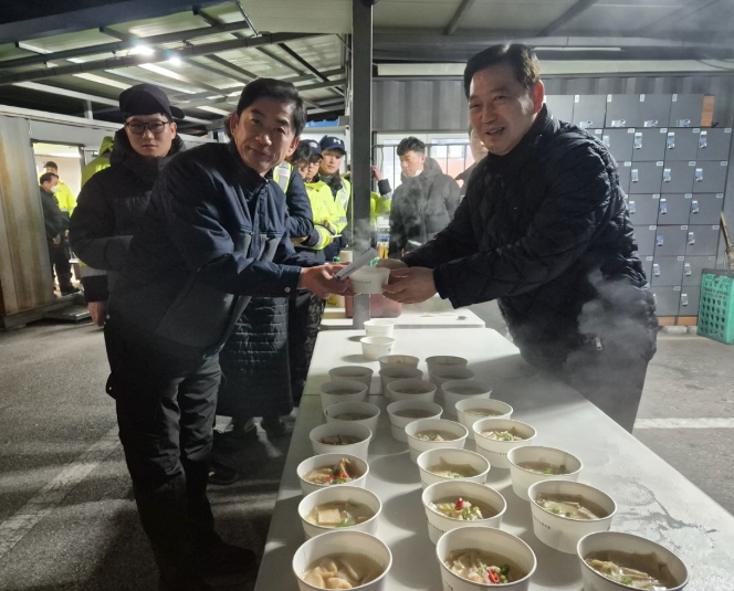 [파이낸셜경제=김지훈 기자] 대구 남구의 조재구 남구청장이 병오년 새해 첫날 새벽, 앞산 큰골에 위치한 환경공무직 근무 현장을 찾아 이른 새벽부터 근무에 나선 환경공무직 직원들을 직접 만나 새해 덕담을 전하고, 떡국 한 그릇을 함께 나누며 감사의 마음을 전했다.