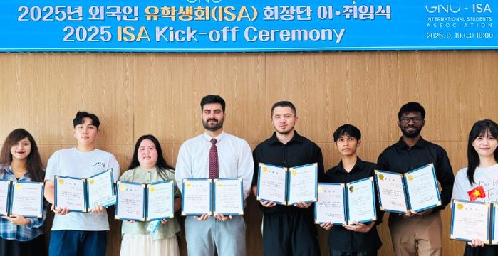 경상국립대학교 국제처에 따르면 2025학년도 2학기에 시작하는 제4기 유학생회 회장은 쟈드 얼레흐만(파키스탄, 영어영문학과 영문학전공 석사과정) 씨가 맡고, 부회장은 류유유(중국, 국제통상학과 박사과정) 씨가 맡게 됐다.